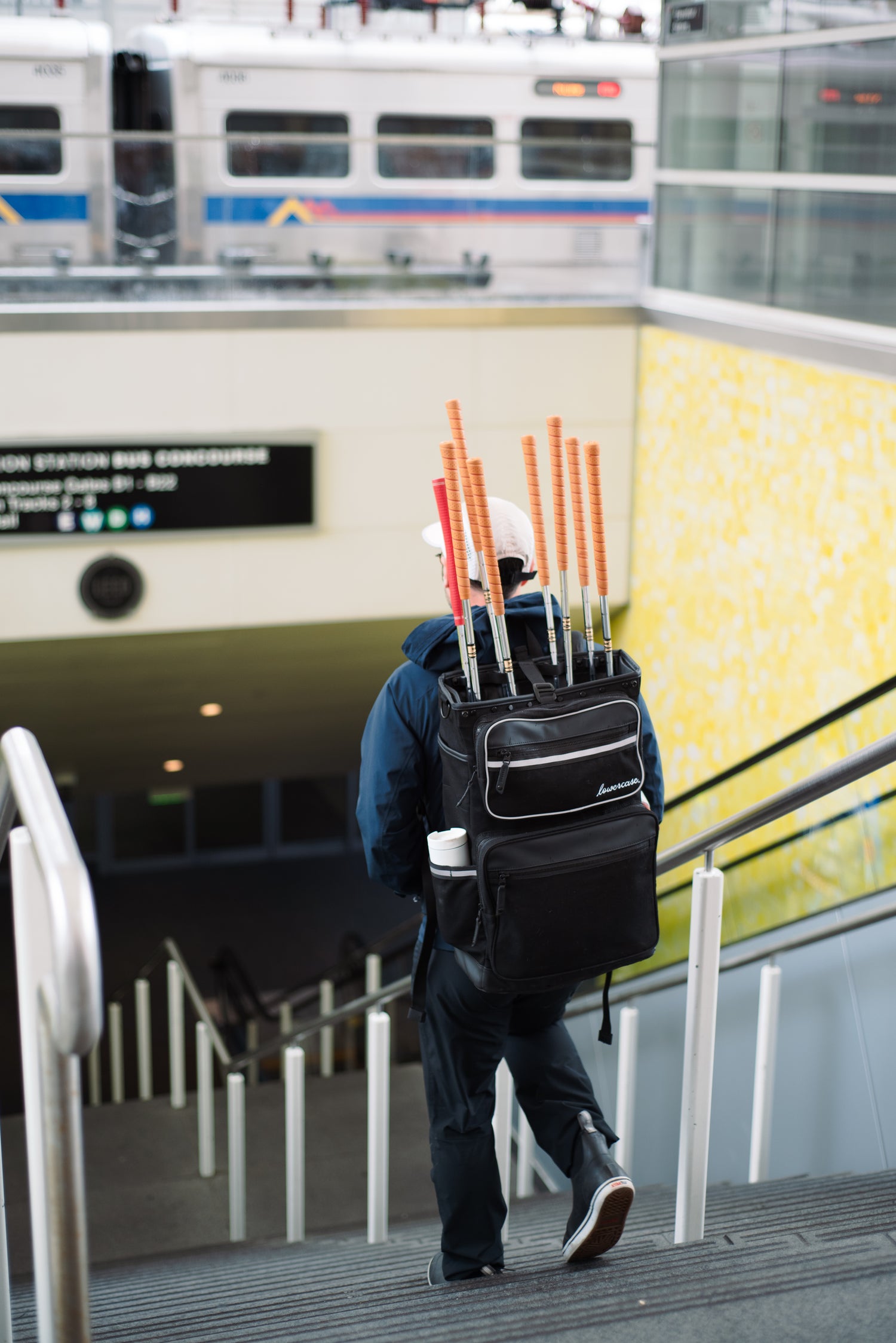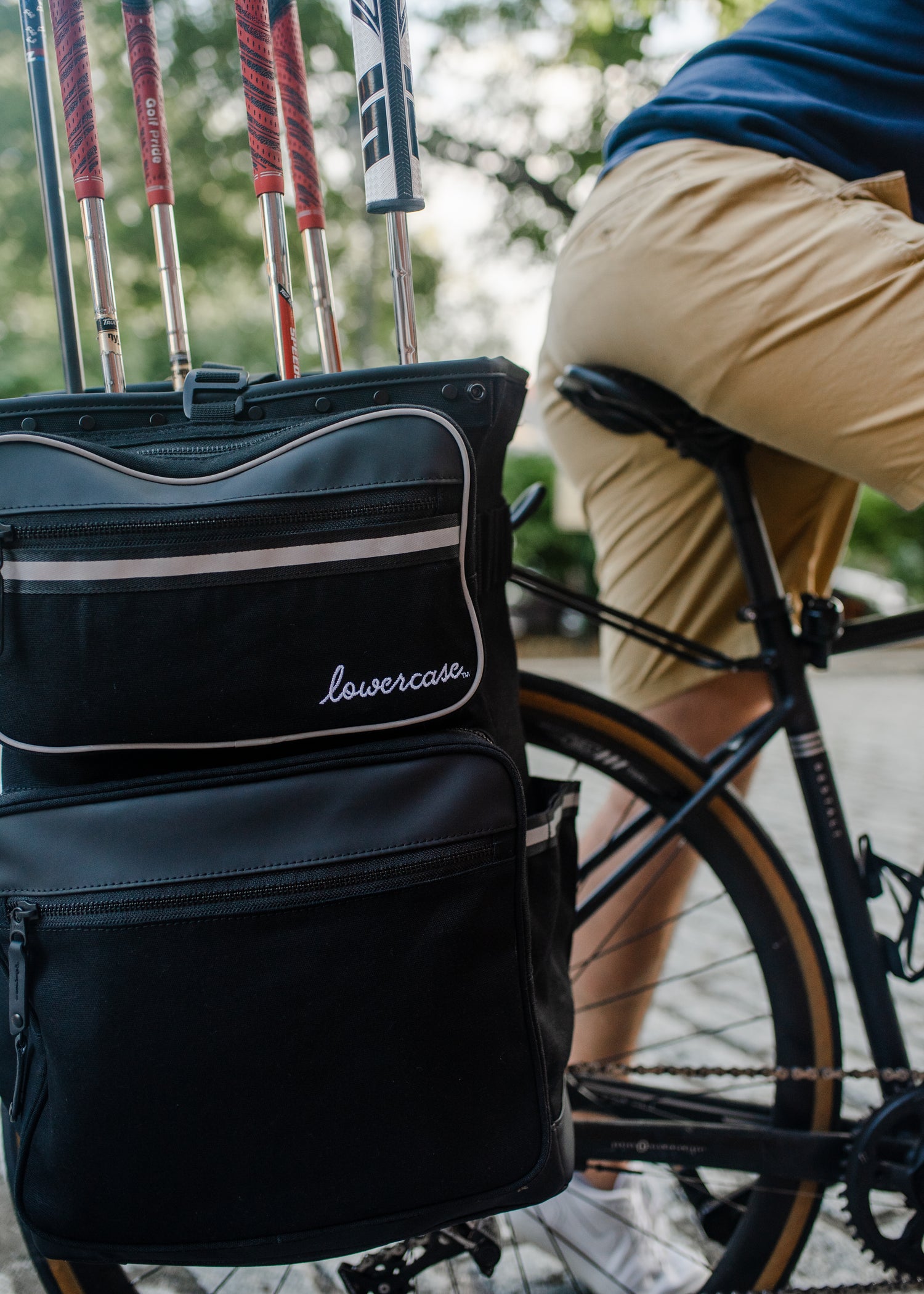 the lowercase bag is a modern, minimalist alternative to the bulk of traditional stand or cart bags. engineered as a golf backpack or pannier, it offers golfers a seamless, balanced carry. eliminating awkward city commutes and providing a safe way to bike to the course. whether you are walking, cycling, or skateboarding, it allows you to move freely and reach the green with ease.