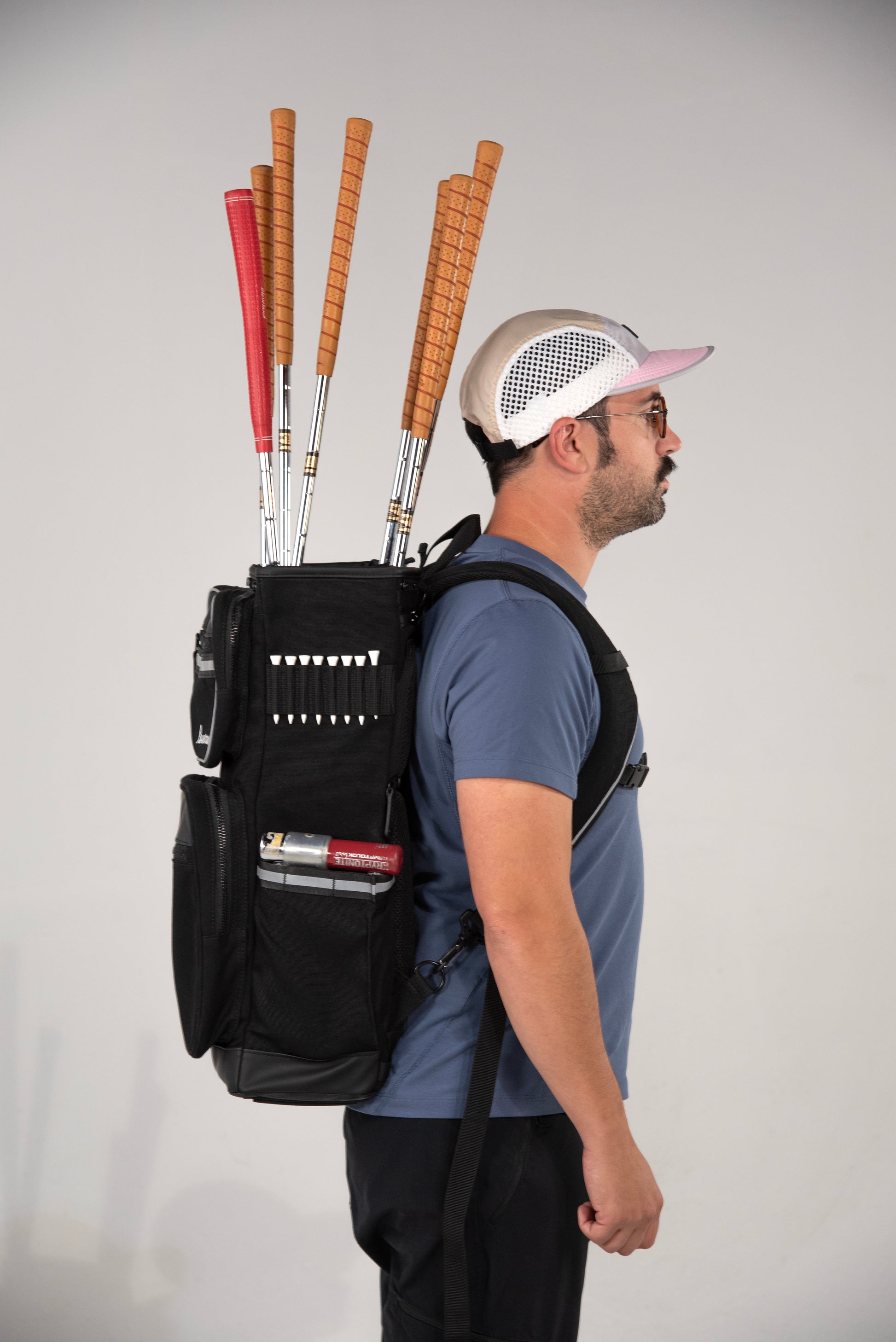 the lowercase golf backpack is designed for golfers on the move. whether you’re heading to the driving range, simulator, par-3, or are just looking for a better way to carry a half set—our patent-pending golf bag functions as a backpack and a bike bag.